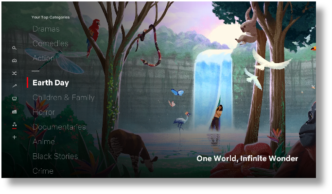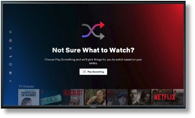 “Play Something”的按钮会在导航菜单的显眼处、播放器的页面、搜索、分类等页面展示。如果用户不知道要看些什么的时候,可以点击“Play Something”按钮,电视将根据用户的内容偏好和观看习惯来选择电影或电视连续剧进行自动播放。
