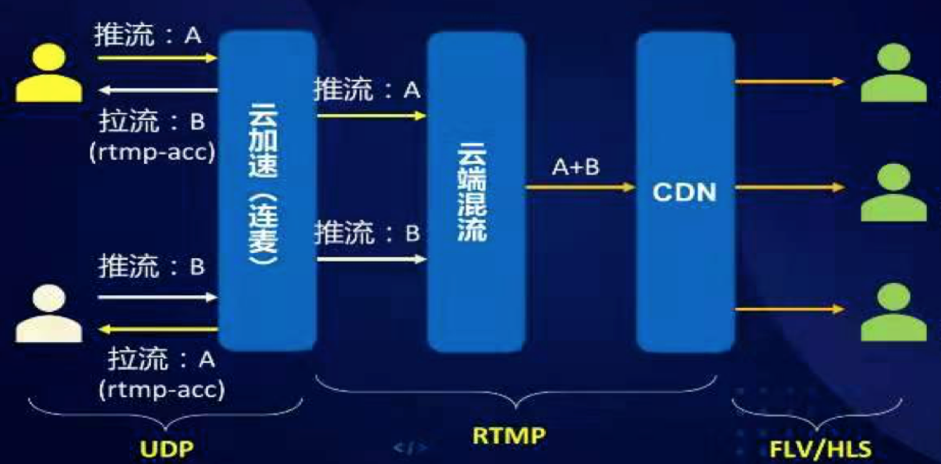 手机摄像头(推拉流)、云端混流和内网CDN系统部署示意图