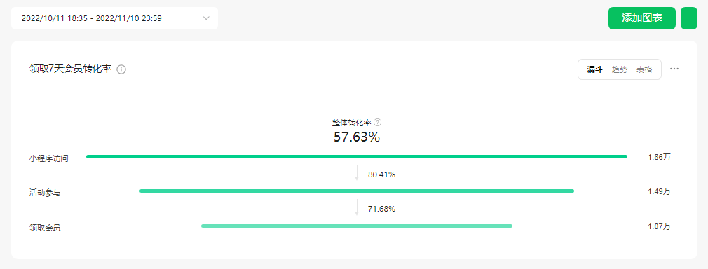 安徽电信电视助手,上线了“7天会员领取活动”上线一个月的数据如图。