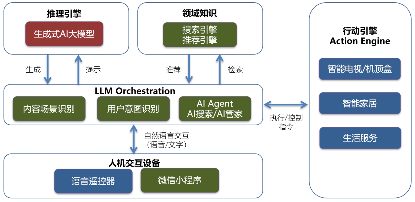 5)行动引擎(Action Engine):负责与家庭环境的互动和任务执行(相当于AI 大模型的手和脚),如控制智能电视/机顶盒、智能家居,以及成为生活助手。