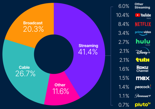 流媒体在美国电视收视中所占份额最大。然而,没有一个流媒体平台对观看其节目的人数完全透明(Netflix从2023年开始每年发布两次《我们观看了什么:Netflix参与度报告》)。